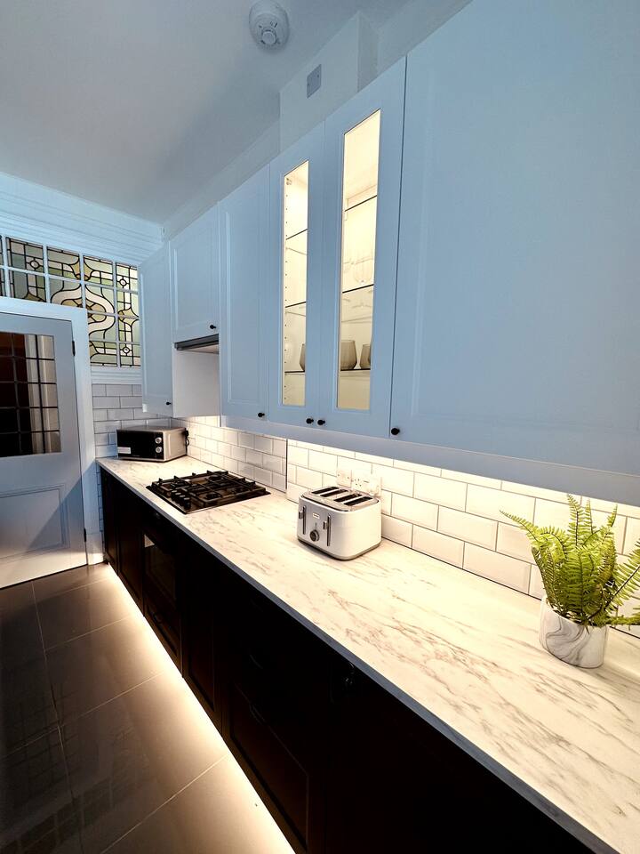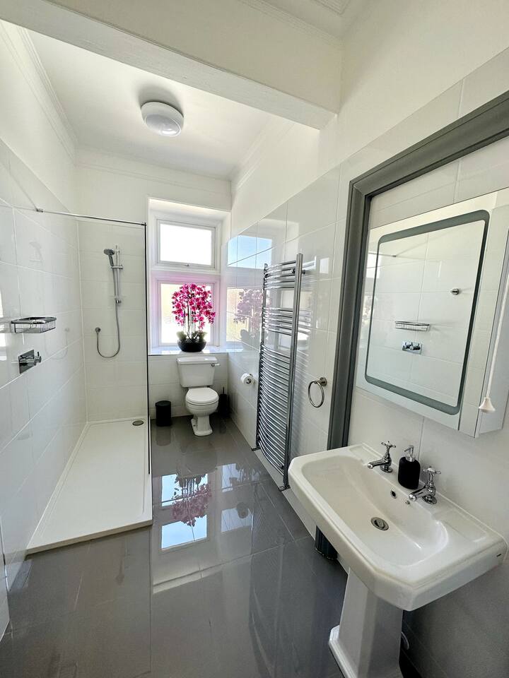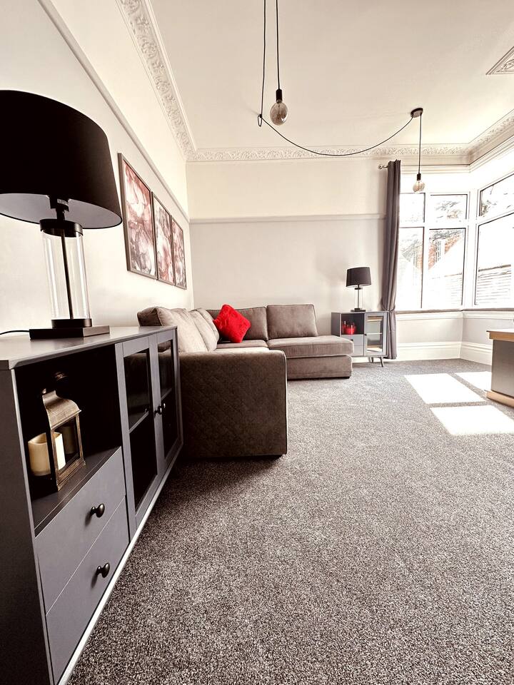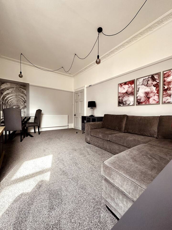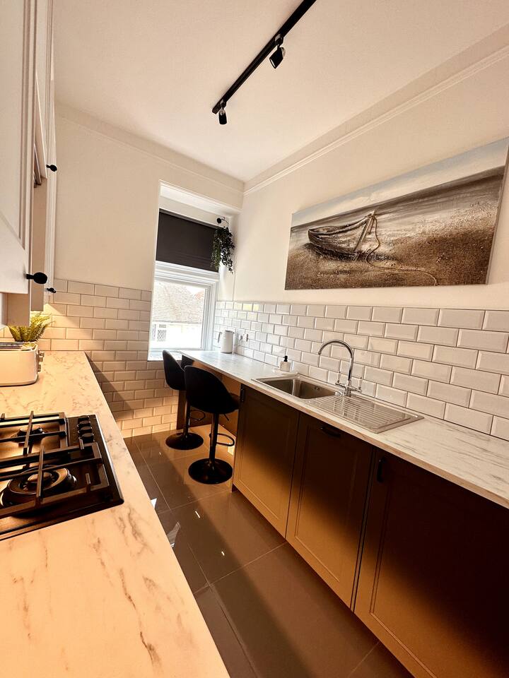 The Bedroom: This boutique-style bedroom features a luxurious king-size bed with a brand-new anti-allergy mattress and hotel-quality linen. All included at no extra cost. Enjoy ambient lighting, ample wardrobe space, a dressing table, and bedside tables for a restful stay. For your convenience, we also provide a hairdryer, iron, and ironing board. The Lounge: Relax in this bright, spacious lounge with a new corner sofa that transforms into a comfortable double sofa bed. The dining area seats 4, and you can unwind with a 65" smart TV featuring Sky TV and playback. The charming window seat is perfect for reading or enjoying the view after a day at the beach. The Kitchen: Our fully equipped, brand-new kitchen includes an electric oven, gas hob, fridge freezer, dishwasher, and a breakfast bar with plenty of power sockets. We provide all the essentials, including a toaster, kettle, and Nespresso Coffee Machine, plus a complete range of crockery, cutlery, and utensils for a seamless stay. The Bathroom: This sleek, modern bathroom features a pedestal wash basin, toilet, heated towel rail, and a contemporary shower with chrome details. Enjoy the illuminated mirror and complimentary toiletries for a touch of luxury. Important Information: Security Camera: The property has one security camera at the entrance for your peace of mind. House Rules: Located in a residential block, this property is not suitable for parties or large gatherings. We allow up to 4 guests maximum. Ideal for Families, Couples, and Remote Workers β Comfortable, quiet, and conveniently located near the beach, shops, and transport. Book your stay now for a relaxing, comfortable, and convenient seaside retreat. We look forward to hosting you!